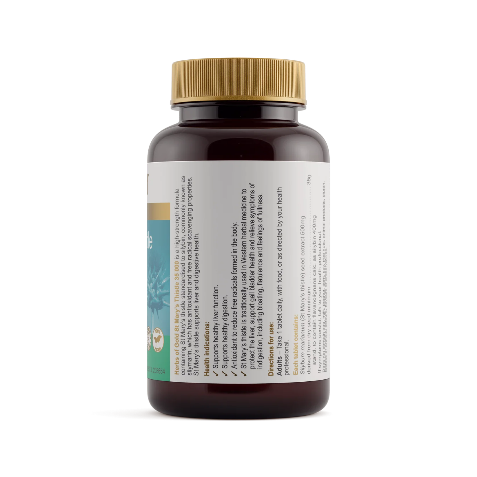 Herbs of Gold St Mary’s Thistle 35 000 contains a standardised extract of St Mary’s thistle to support healthy liver function.