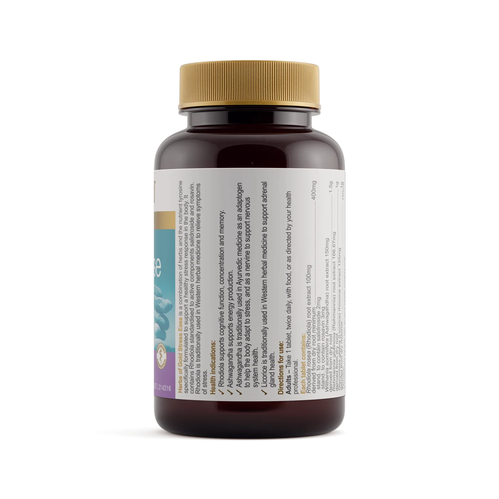 Herbs of Gold Stress Ease contains a blend of herbs to support a healthy stress response in the body.