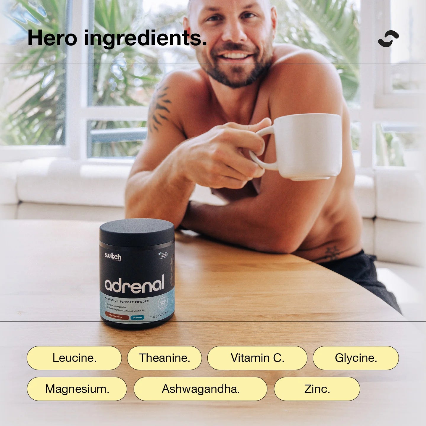 Adrenal Switch is your ultimate key to unlocking superior recovery, relaxation, and overall wellbeing. Specially formulated with a potent blend of essential minerals, adaptogens, and amino acids, it’s designed to help your body recharge and repair after intense exercise, while also promoting relaxation and stress relief.