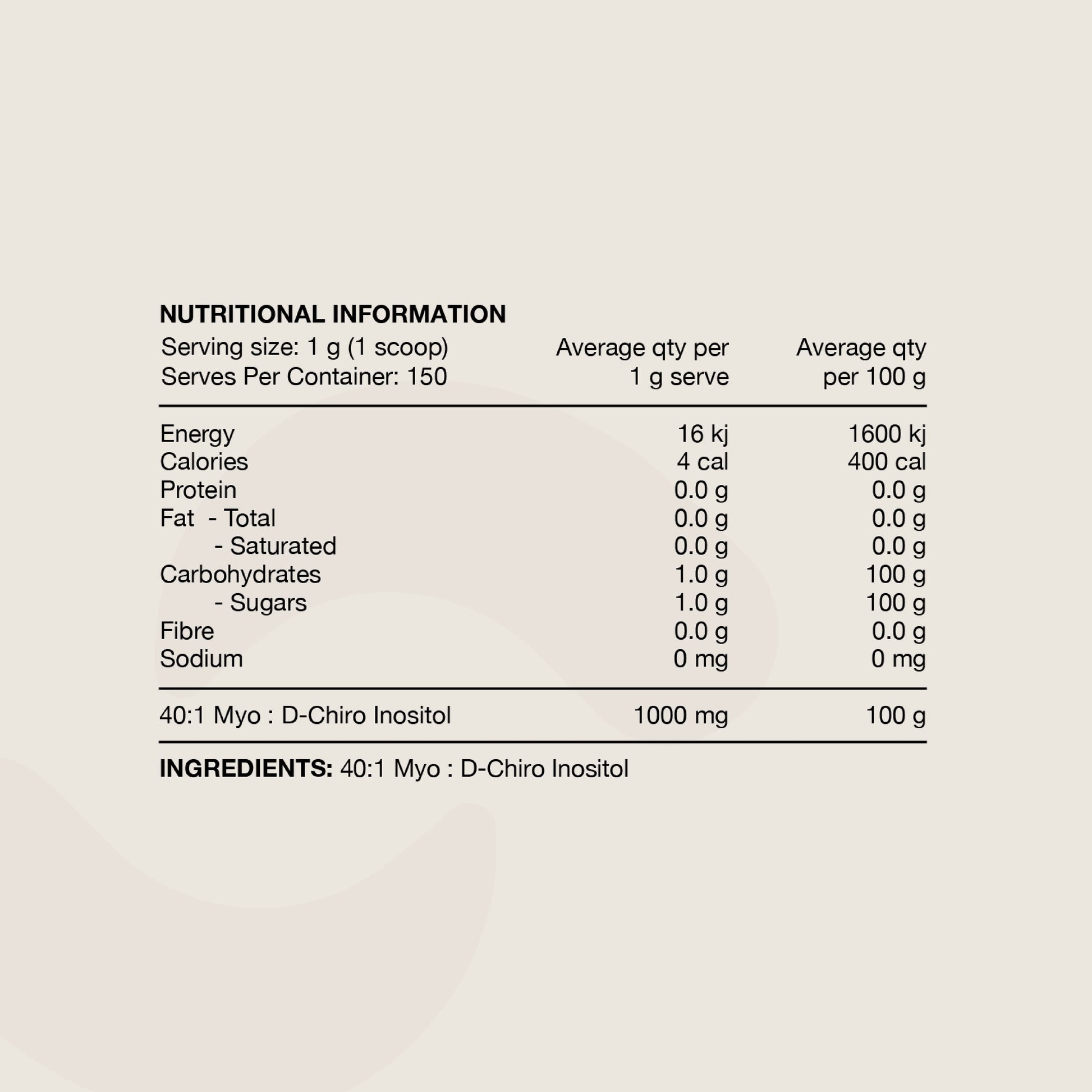 Our Inositol is a precise & validated 40:1 ratio of Myo-Inositol to D-Chiro Inositol.