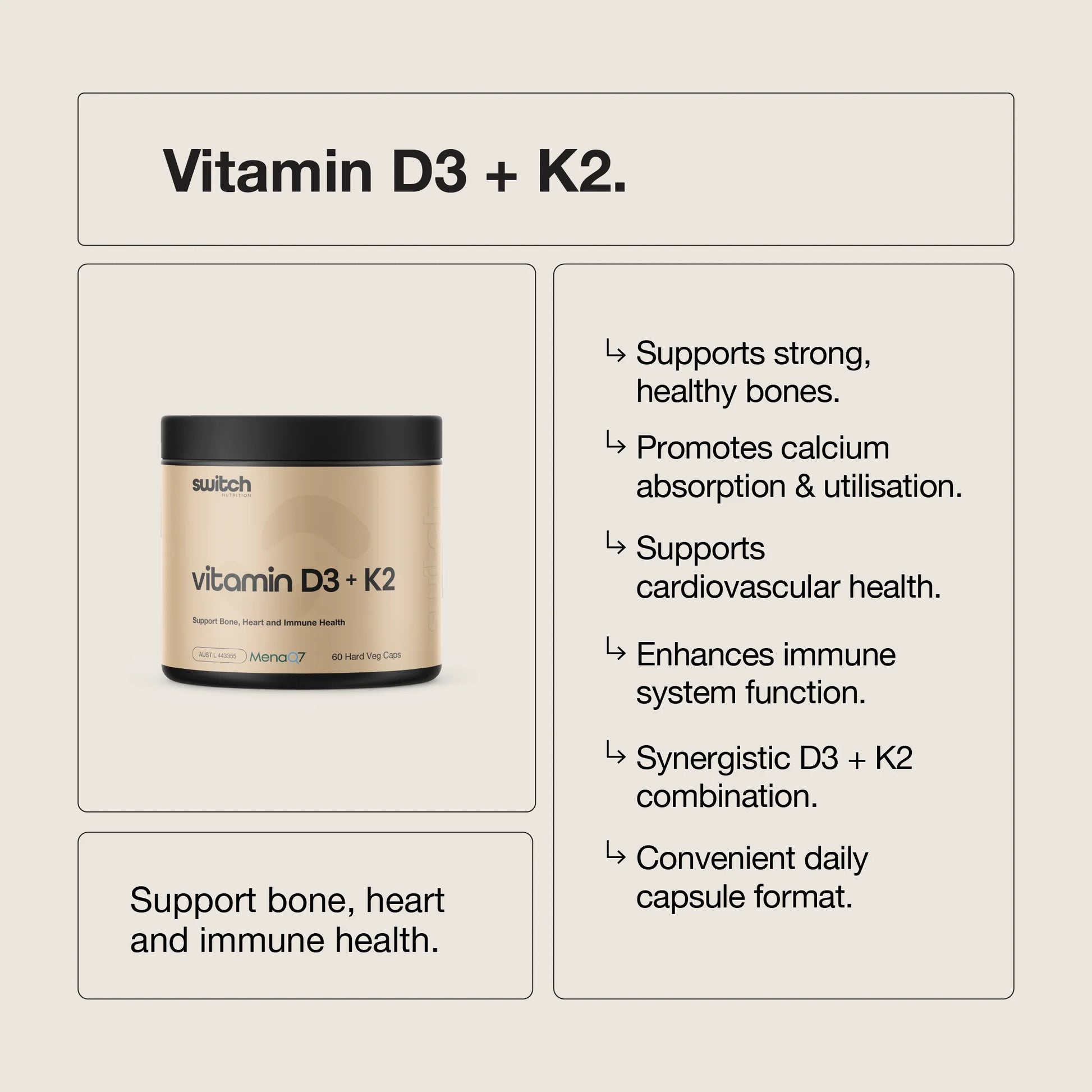 Switch - Vitamin D3 + K2 - 60 Capsules